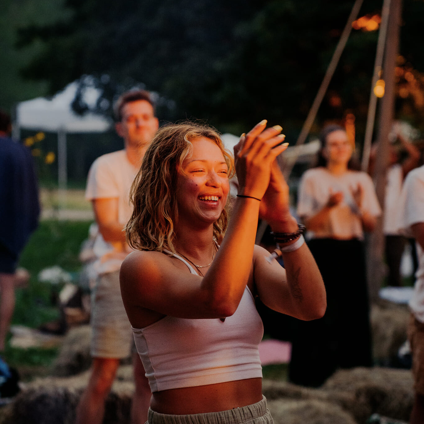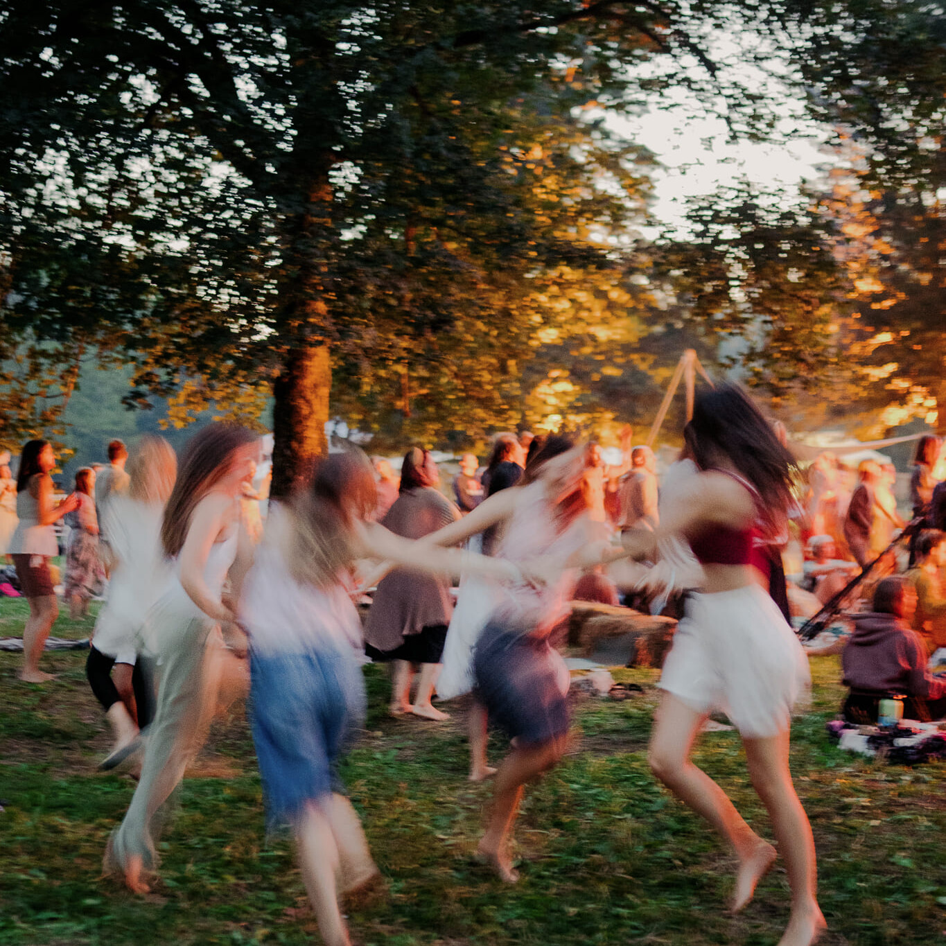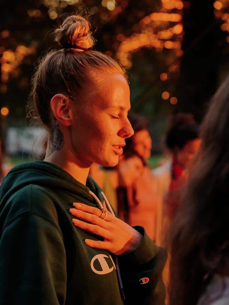 Cacao ceremony, group singing, fire circle. A time to close the day together and integrate what emerged.