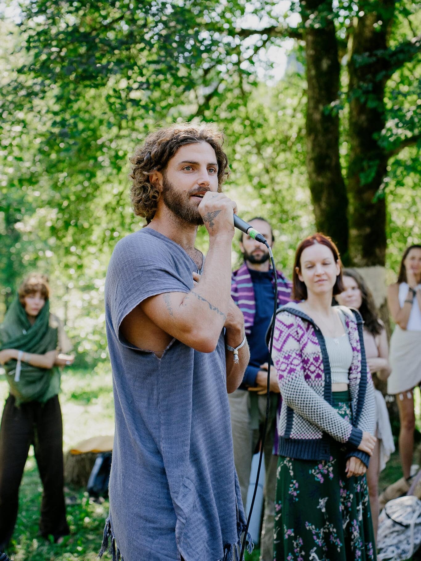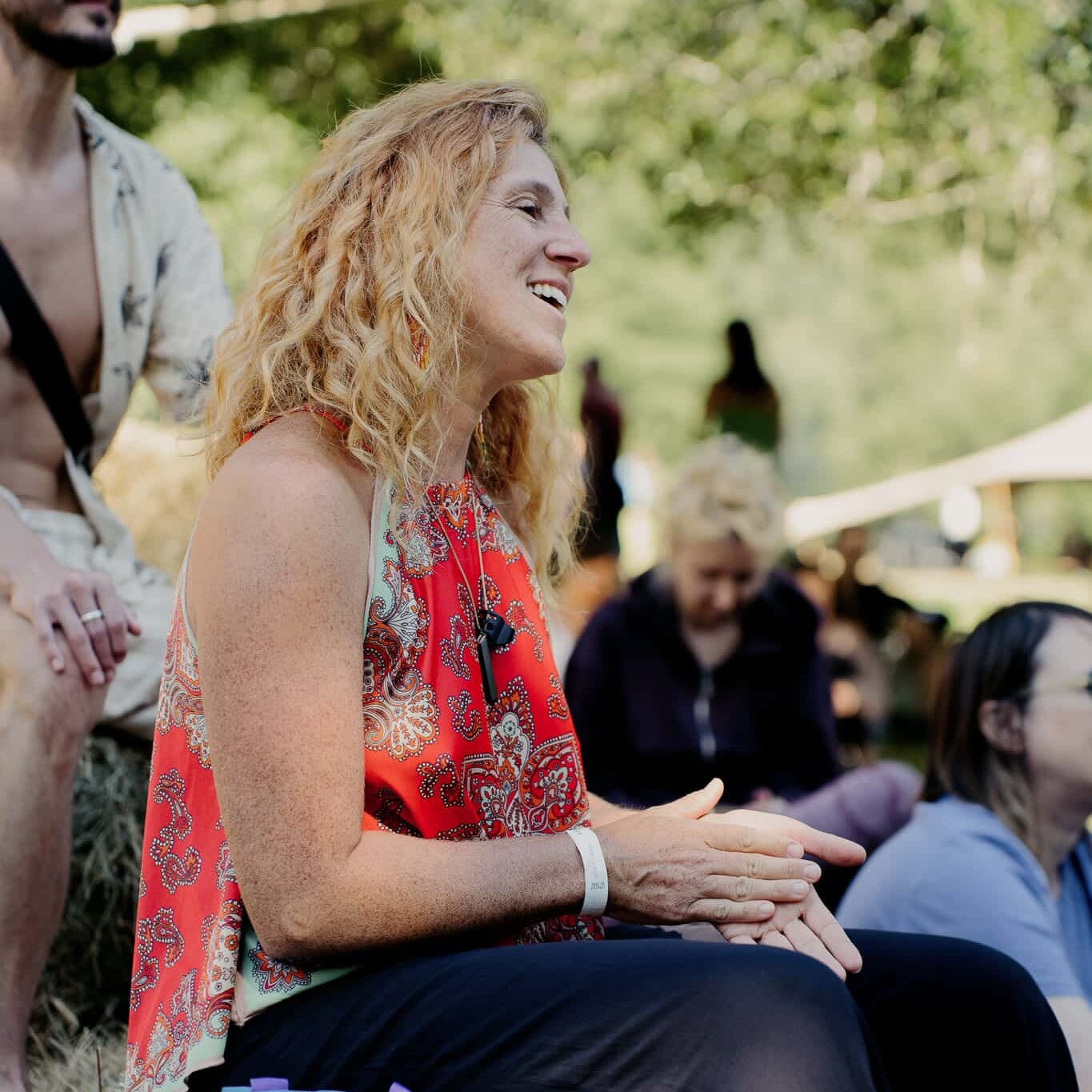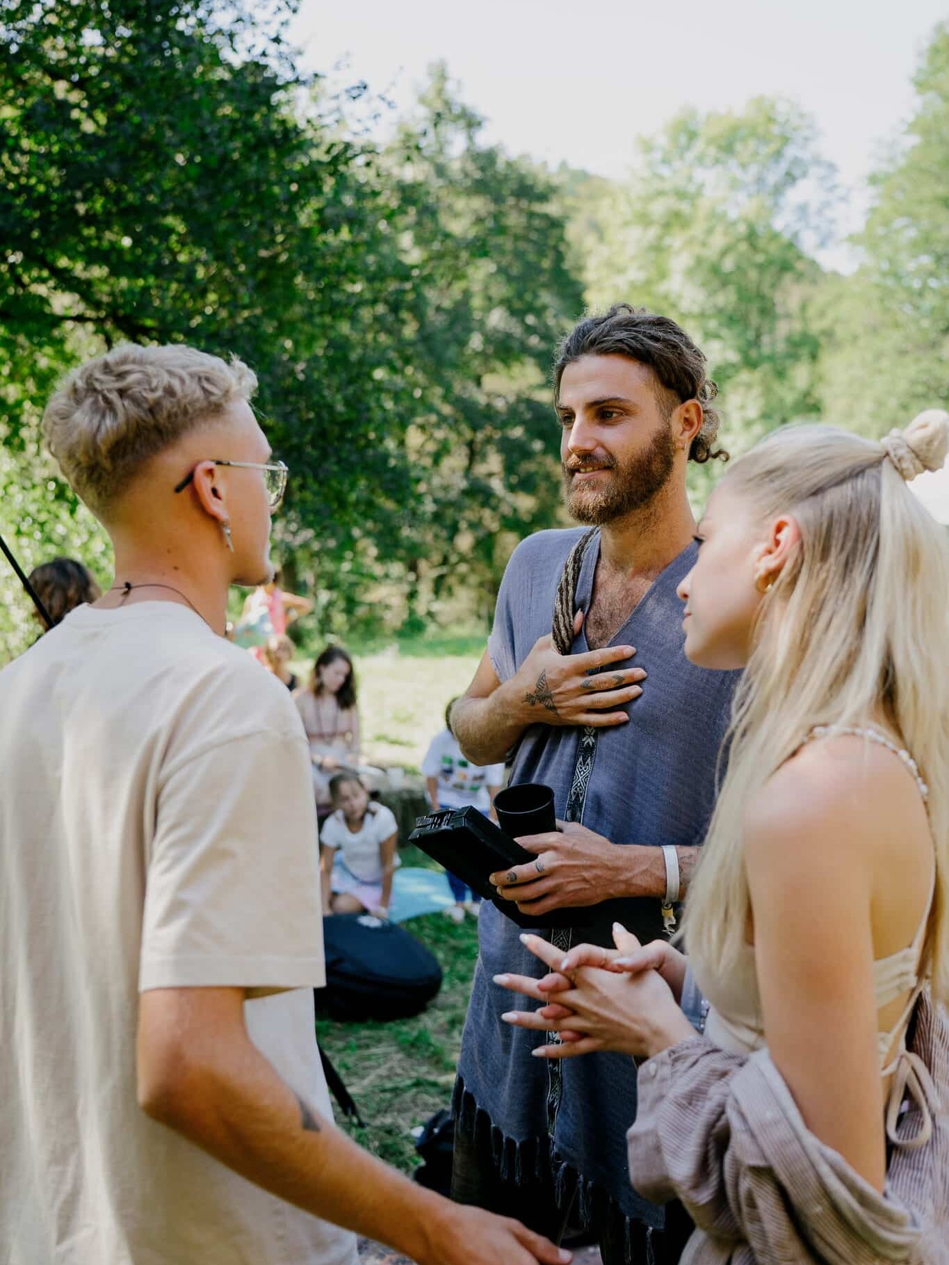 Cacao ceremony, group singing, fire circle. A time to close the day together and integrate what emerged.