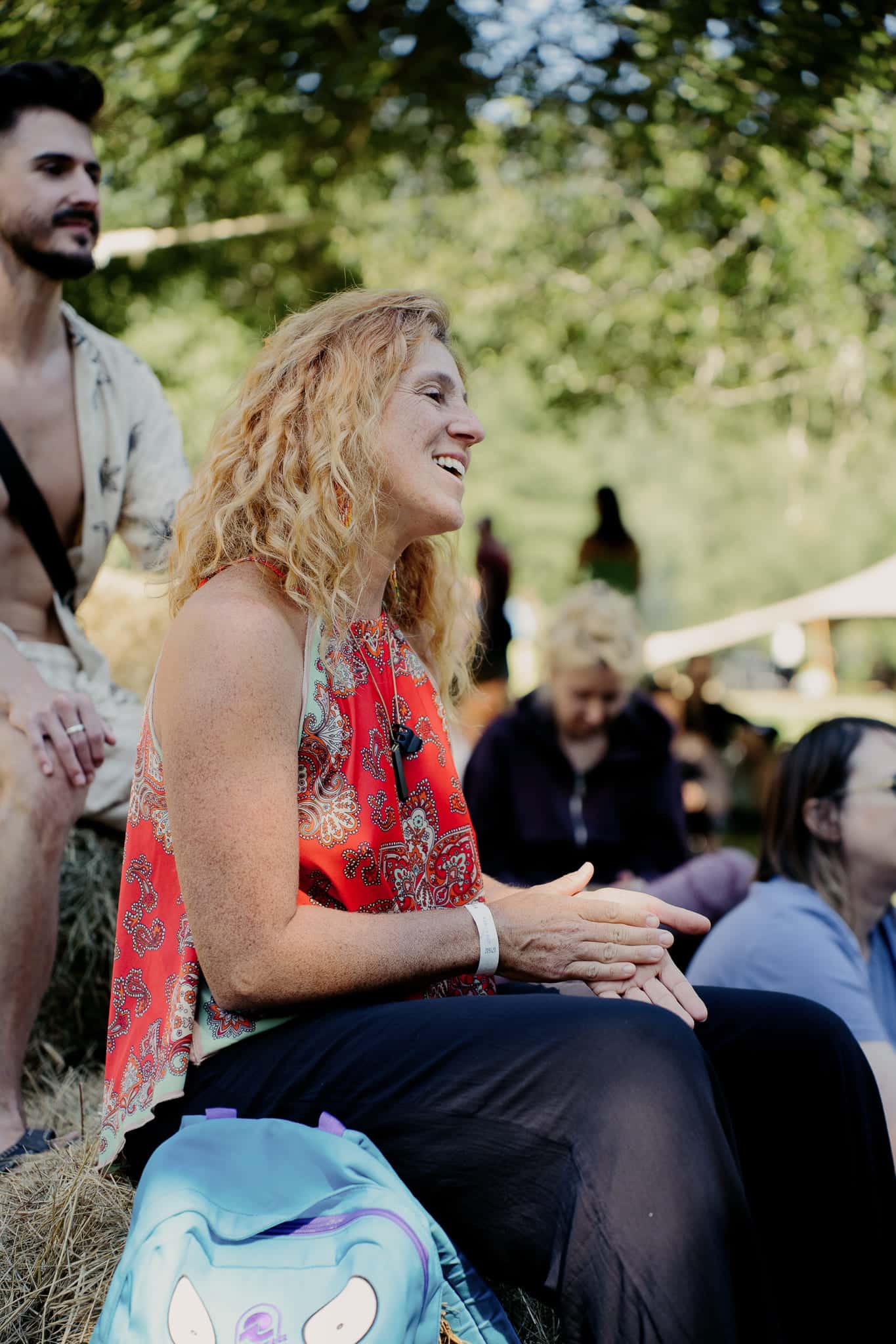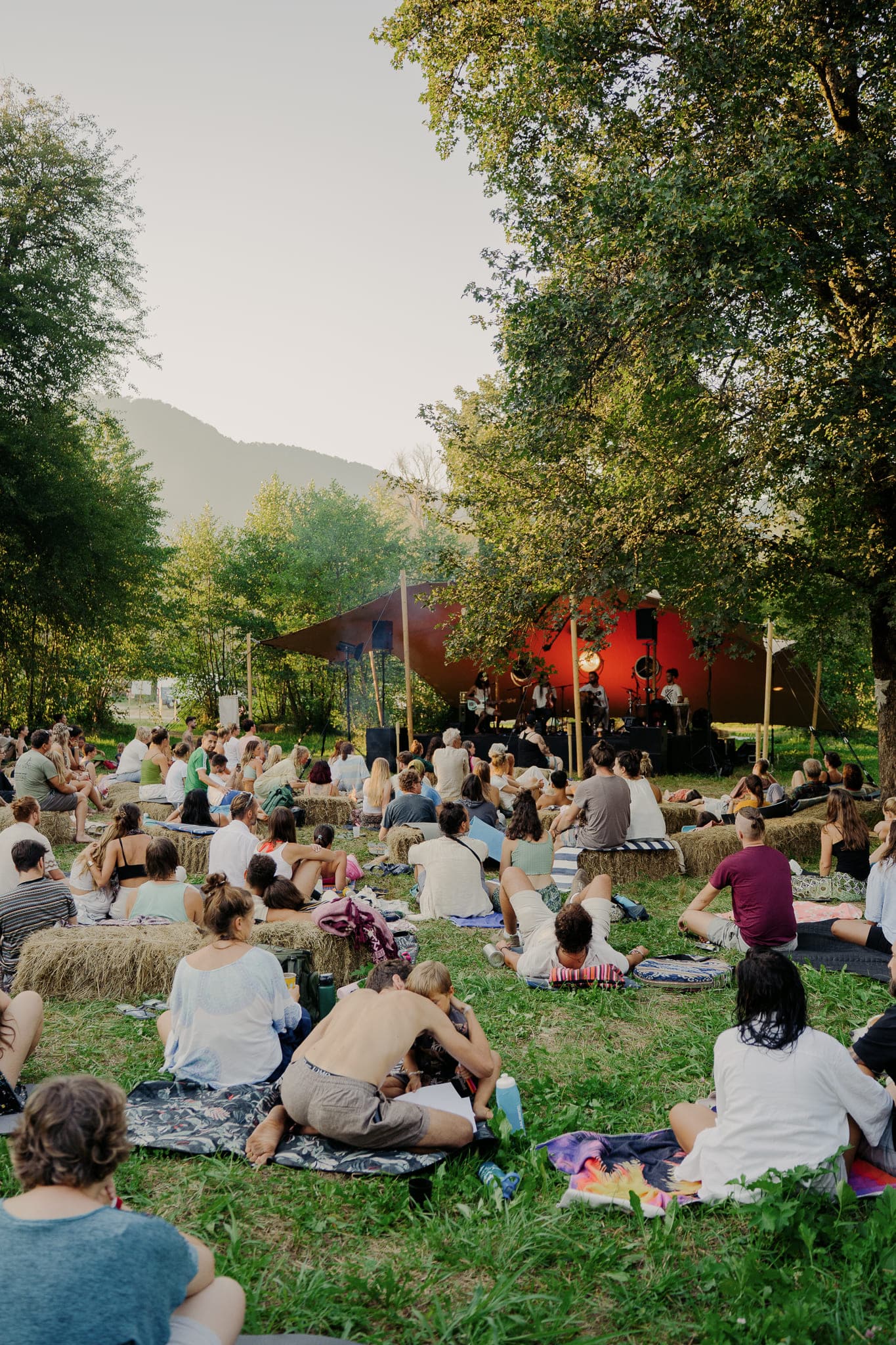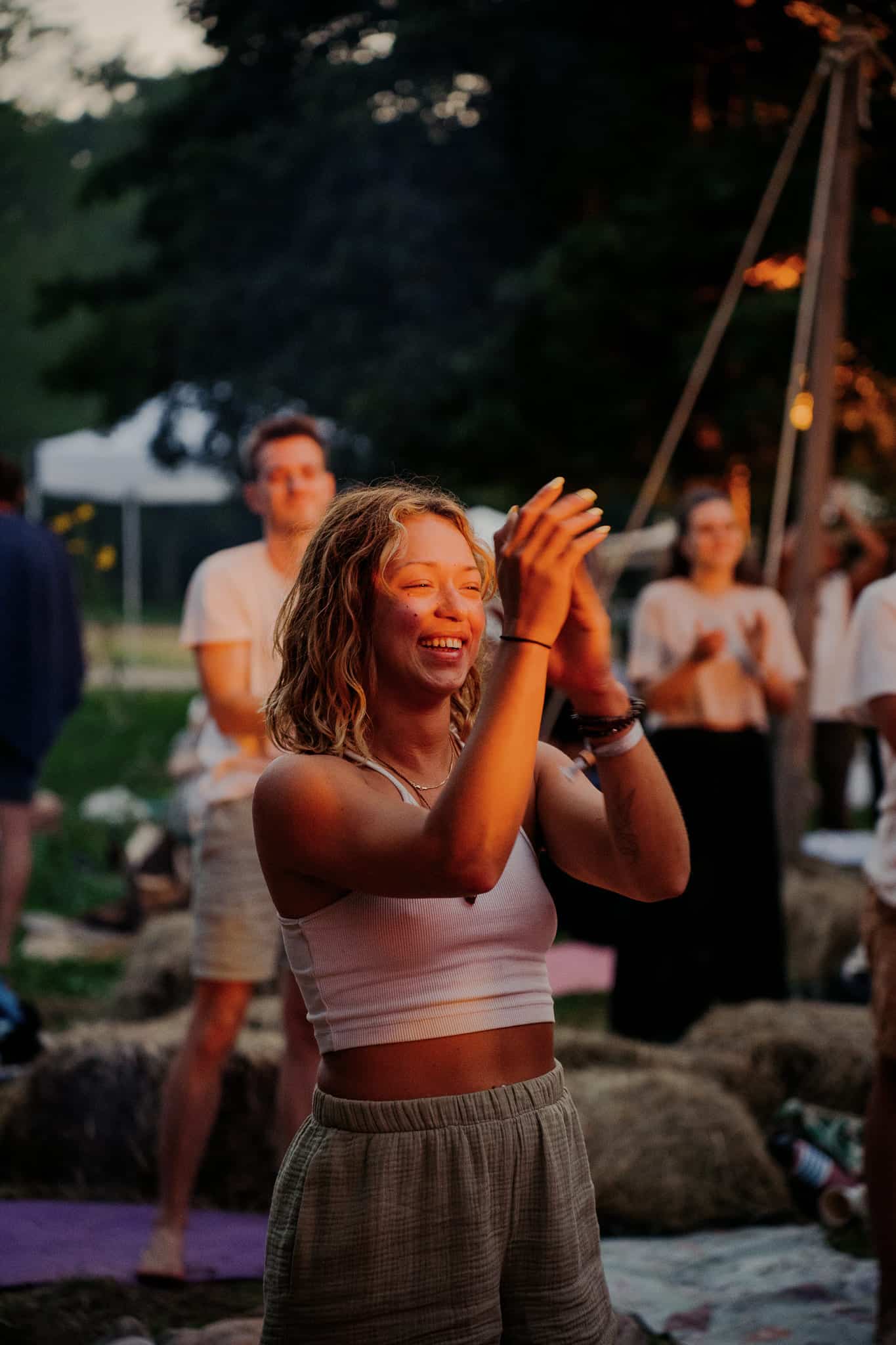Cacao ceremony, group singing, fire circle. A time to close the day together and integrate what emerged.
